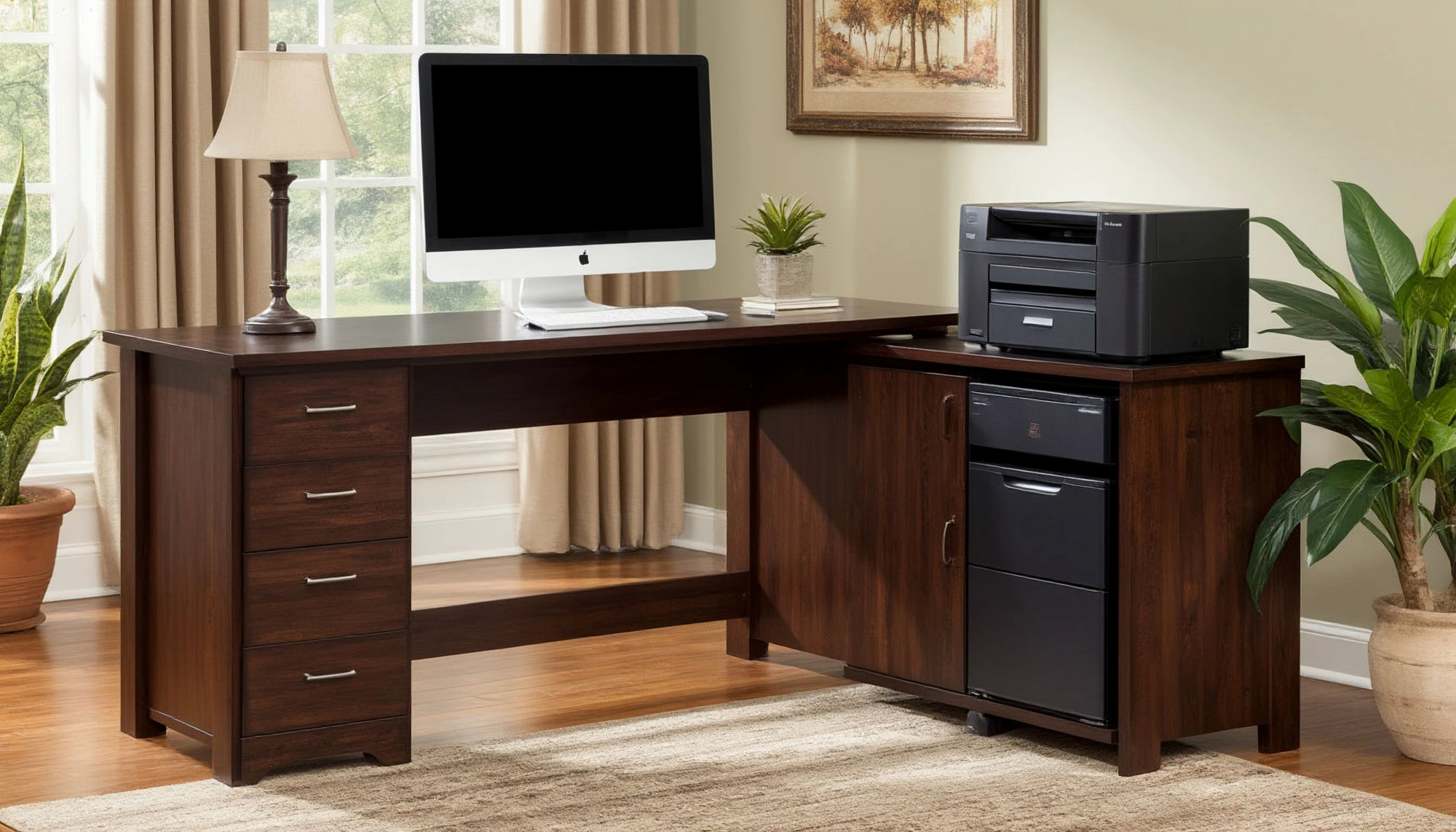 Стол не только удобен в использовании, но и обладает эстетической привлекательностью. Его лаконичный дизайн позволяет легко сочетать его с другими элементами интерьера. Вы можете выбрать дополнительные элементы декора — картины на стенах, стильные офисные принадлежности или растения в горшках — которые подчеркнут вашу индивидуальность и создадут гармоничную атмосферу в рабочем пространстве.