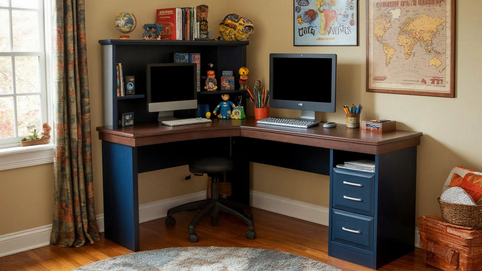 Угловой компьютерный стол "Молодец" от компании "Мебель Нашел" — это не просто предмет мебели, а полноценное решение для создания комфортного и функционального рабочего пространства, которое идеально впишется как в домашний кабинет, так и в офис. Этот стол выполнен в стильном сочетании коричневого и синего цветов, что придает ему современный и элегантный вид. Он станет не только практичным элементом вашего интерьера, но и его украшением, создавая атмосферу уюта и продуктивности.