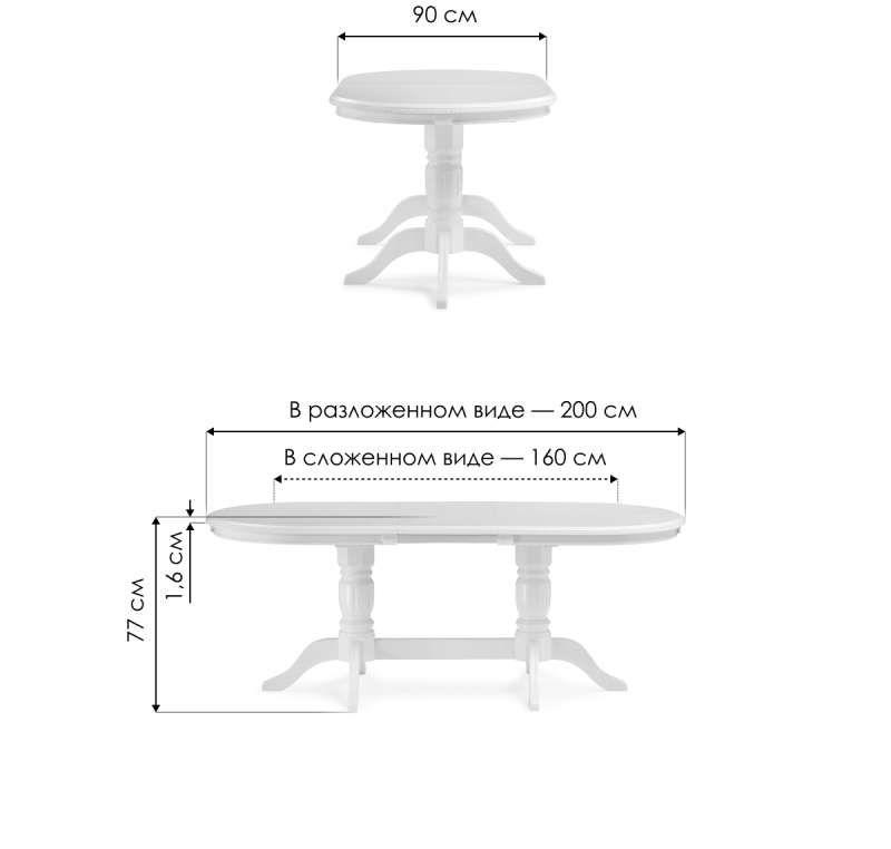 Стол деревянный Эвклаз 160(200)х90х77 белый / белый (90x77).