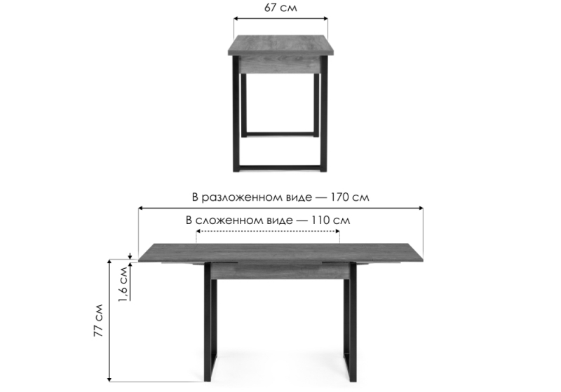 Стол деревянный Форли 110(170)х67х77 рошелье / черный матовый (67x77).