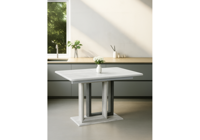 Стол деревянный на тумбе Санса 120 камень светлый / камень темный (80x76)