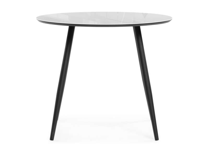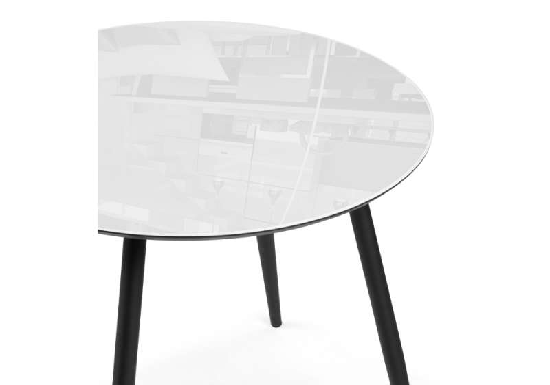 Стол стеклянный Абилин 90 ультра белое стекло / черный / черный матовый (90x76)