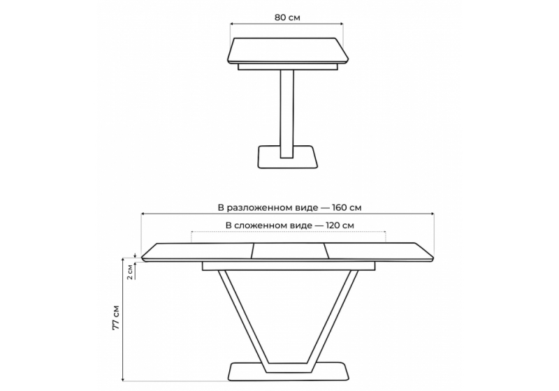 Длина стола в разложенном виде: 160 см.